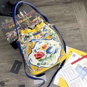 Dolce Gabbana Print Crespo Bucket Bag Multicolor With Branded Plate For Women Dg Bag