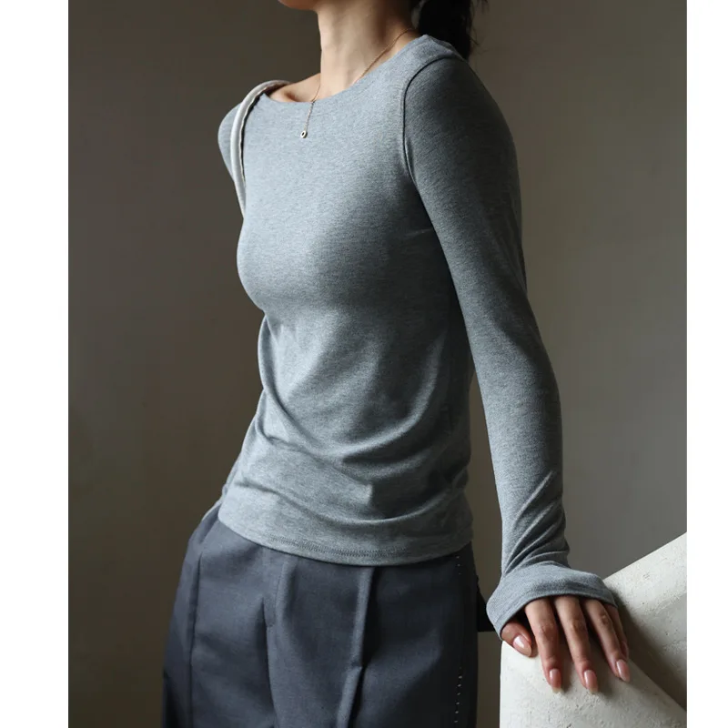 Autumn Women’s T-Shirts Modal Layering Tops Solid Color Sexy Slash Neck Slim Classic Elegant Korea Winter Female Blouse C5401