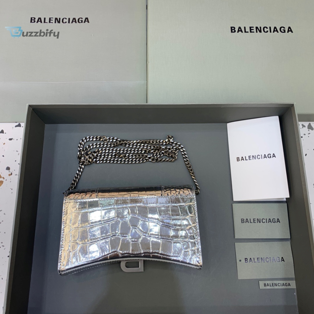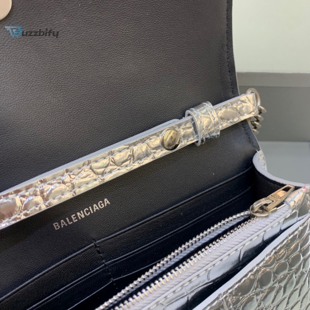 Balenciaga Hourglass Wallet On Chain In Sliver For Women Womens Bags 7.6In19cm 6560501S4cy8110