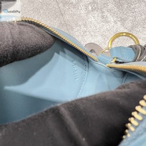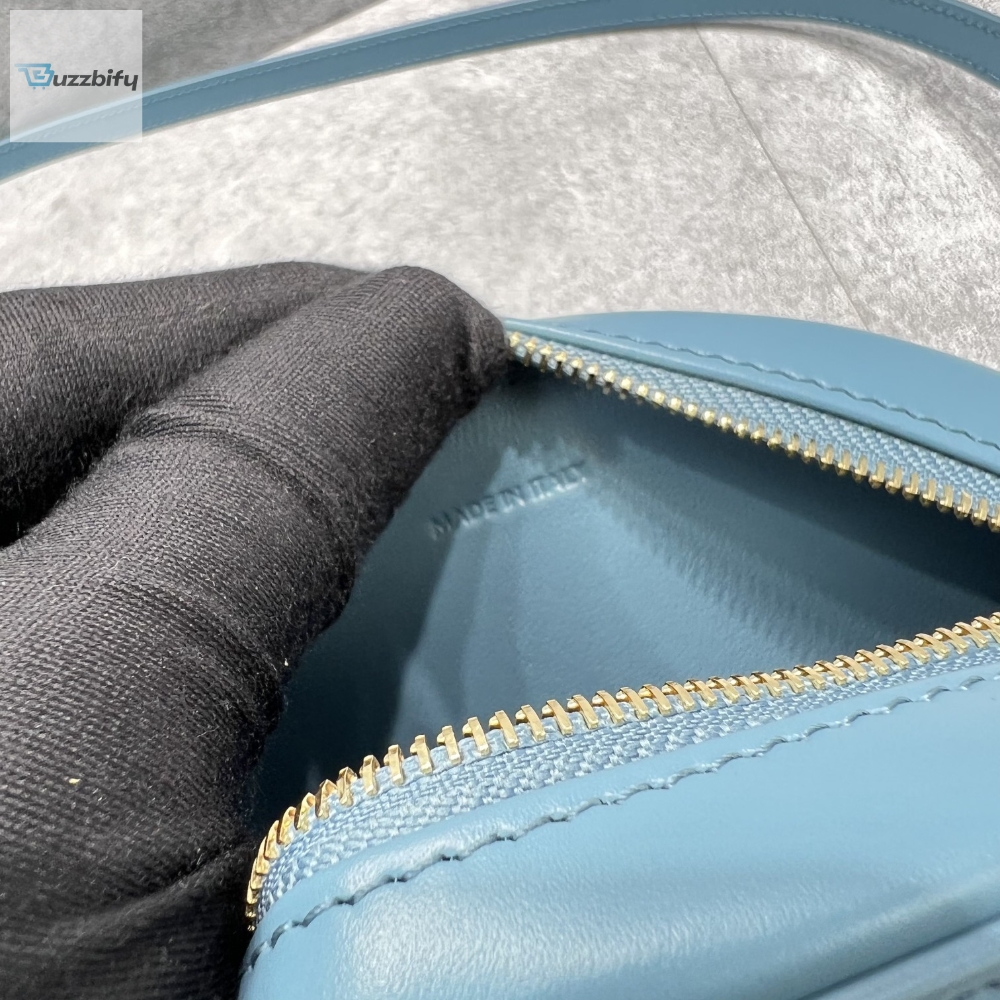 The Celine Crossbody Oval Purse Cuir Triomphe Blue is thoughtfully designed with a zip closure, guaranteeing the safety of your belongings. The interior is lined with a soft fabric to protect your valuables and features a small pocket for additional organization. The iconic Celine logo adorns the front of the purse, showcasing the brand’s impeccable craftsmanship and unique aesthetic.