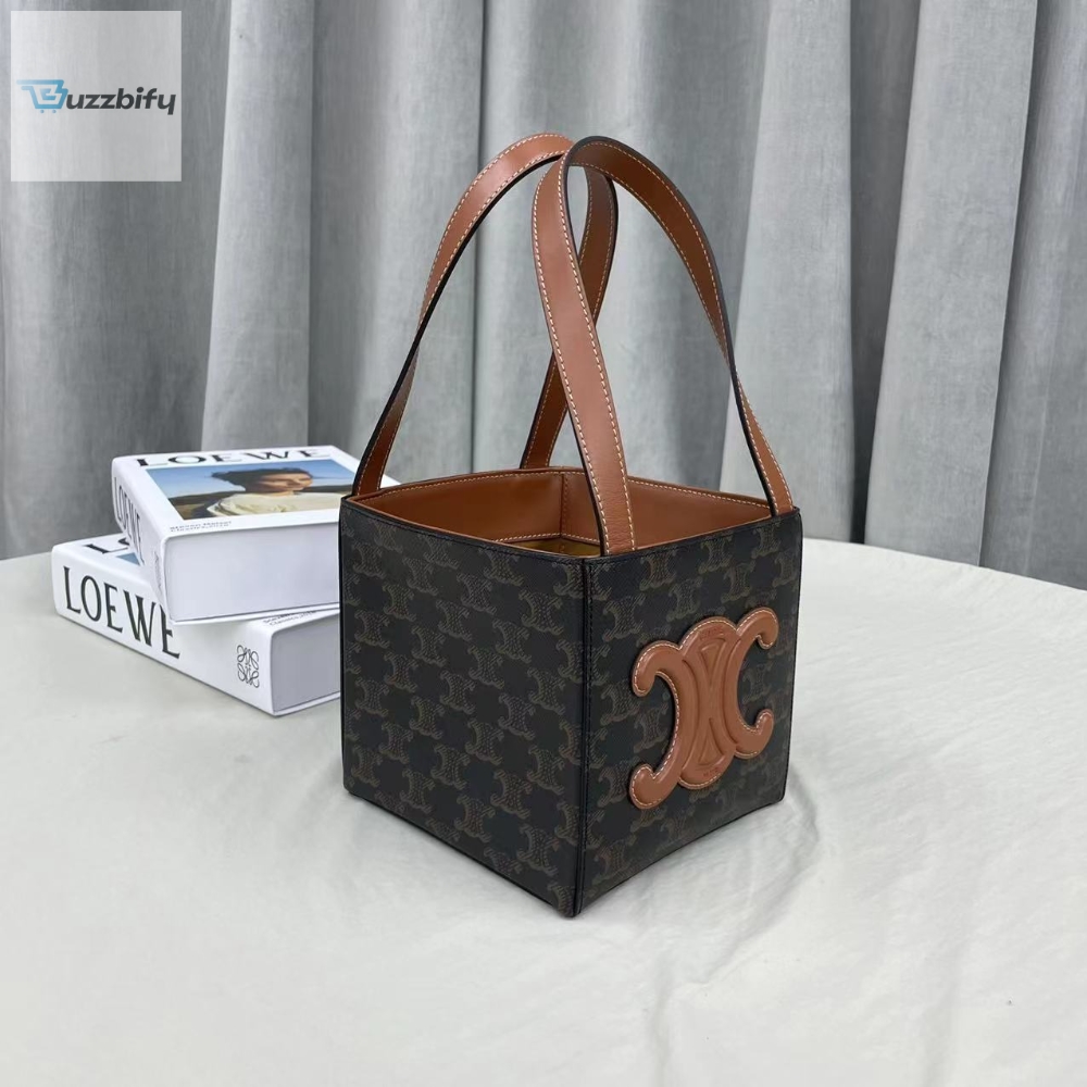 Celine Cuir Triopé Canvas Cube Bag Triumph Tan For Women 6In15cm 199202Ein.04Lu