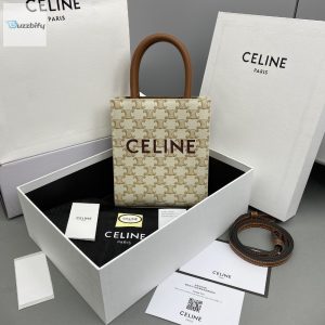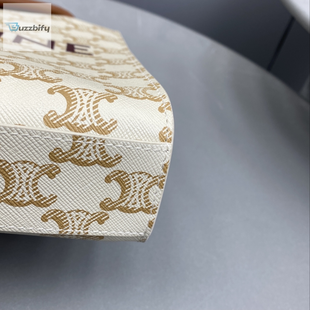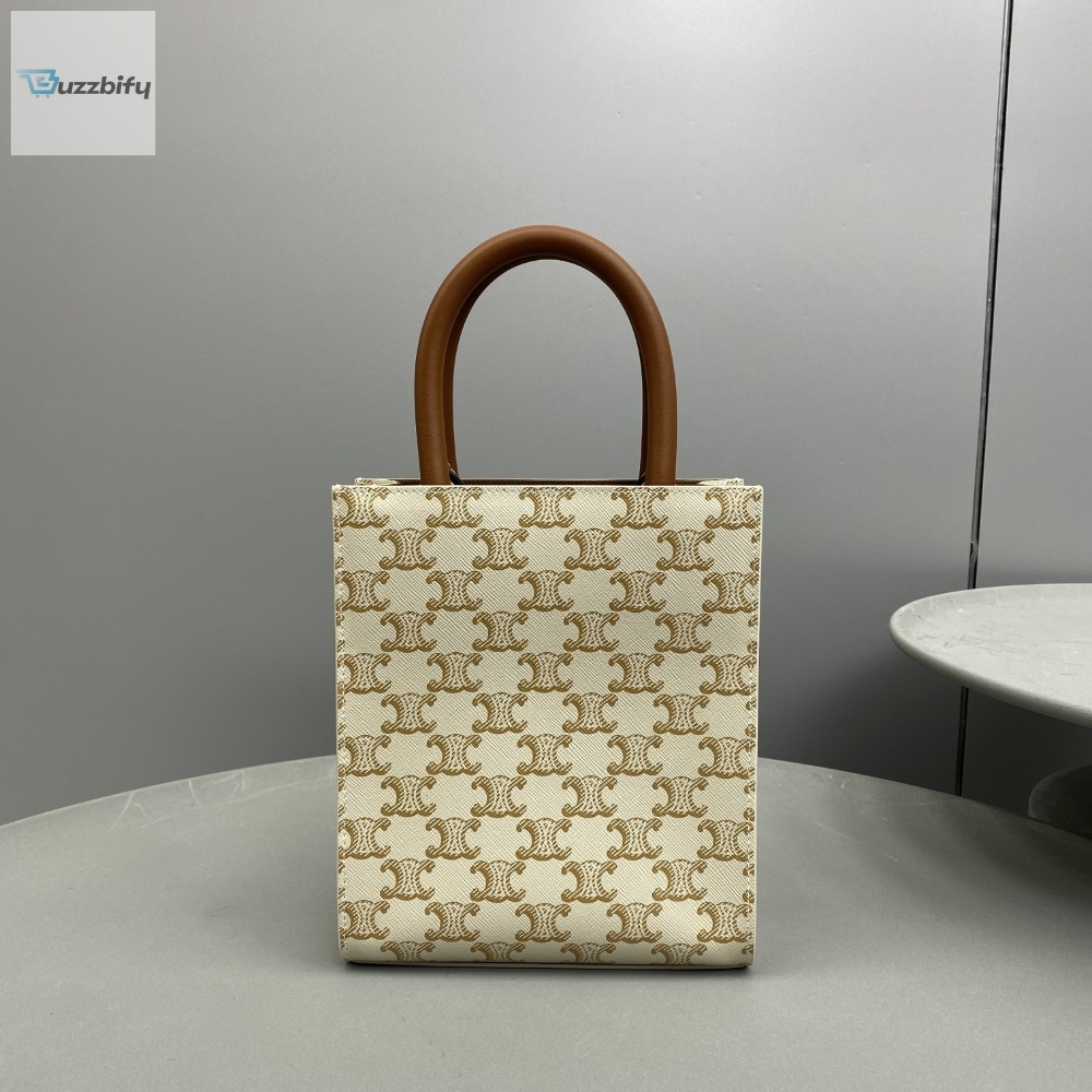 Celine Mini Vertical Cabas In Triomphe Canvas White For Women 7.2In18cm 194372Bzk.01Bc