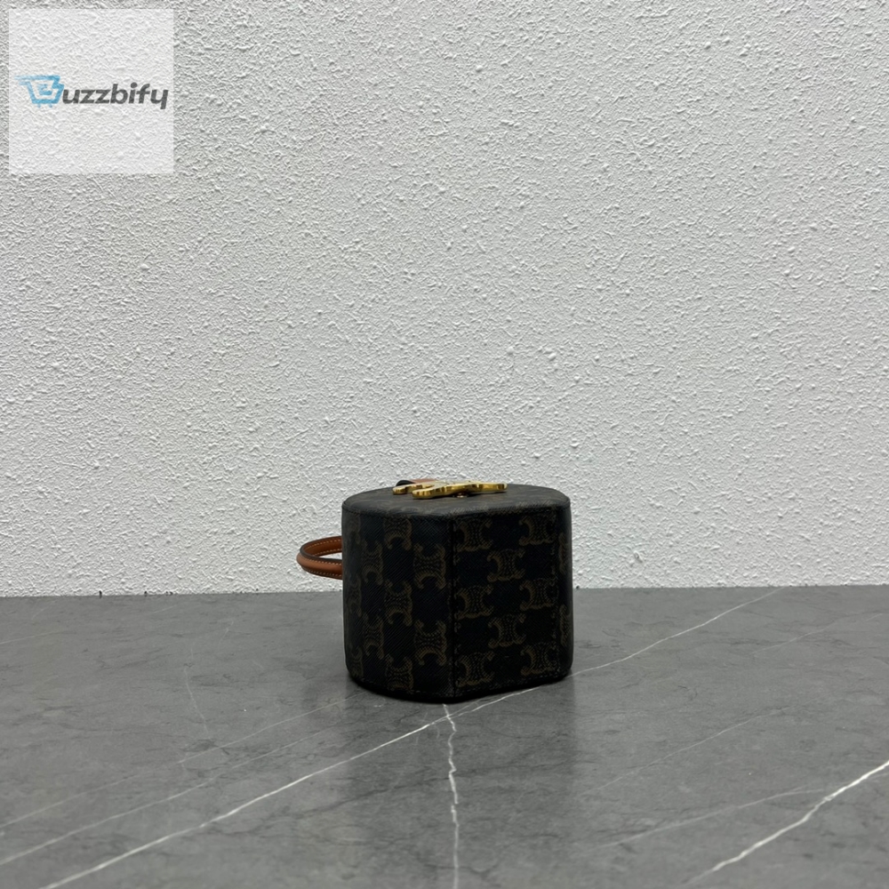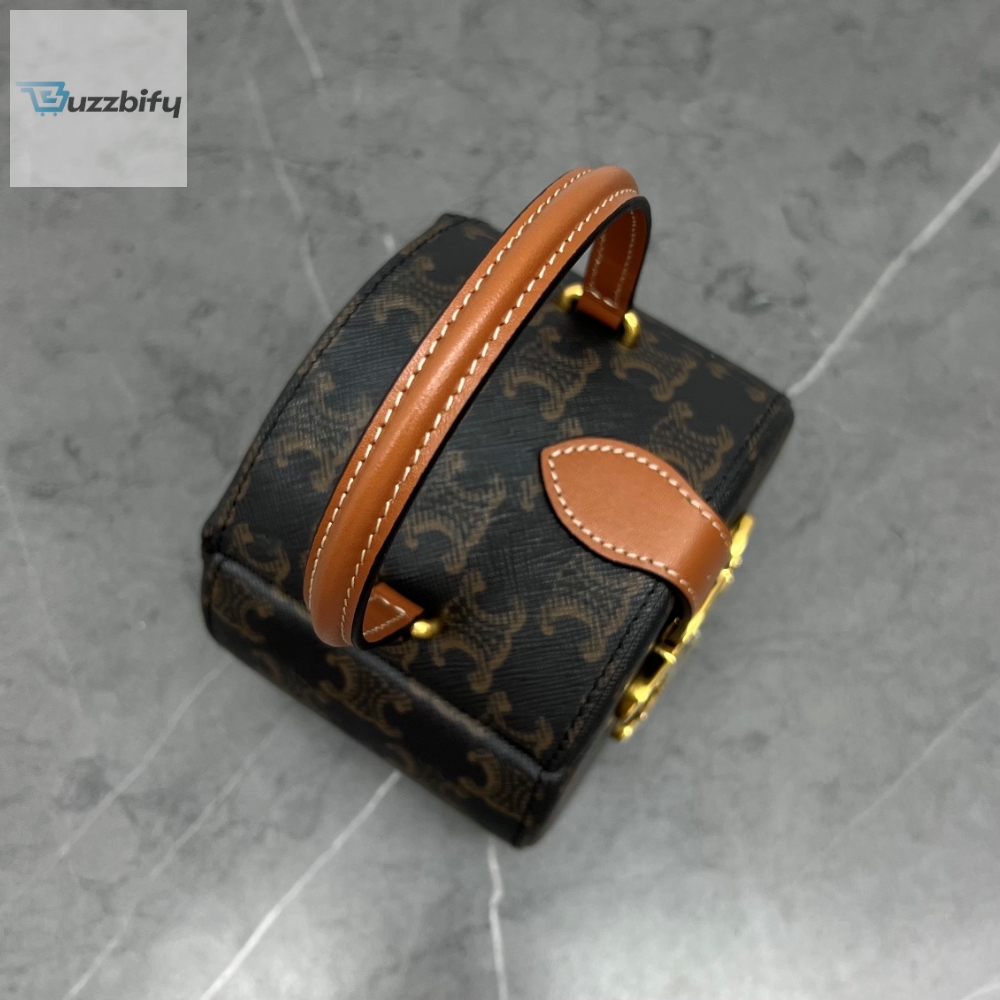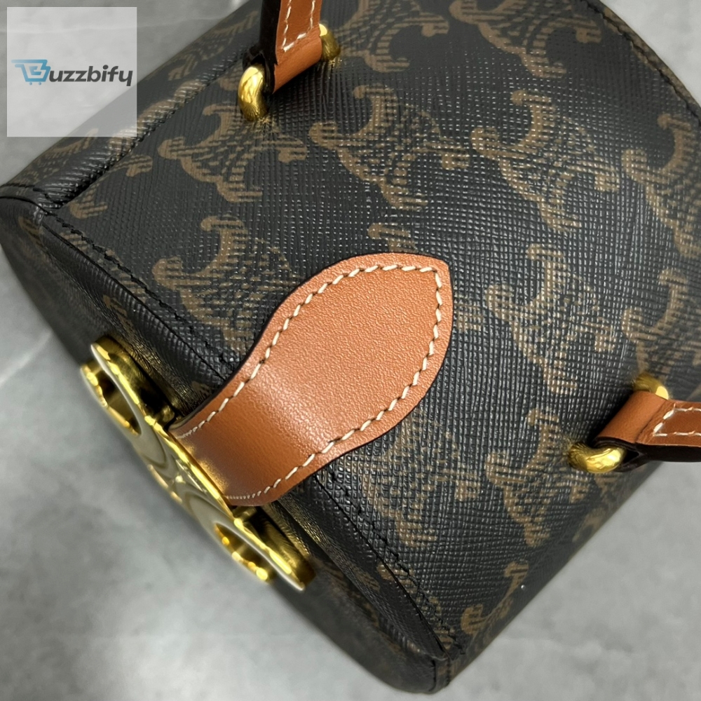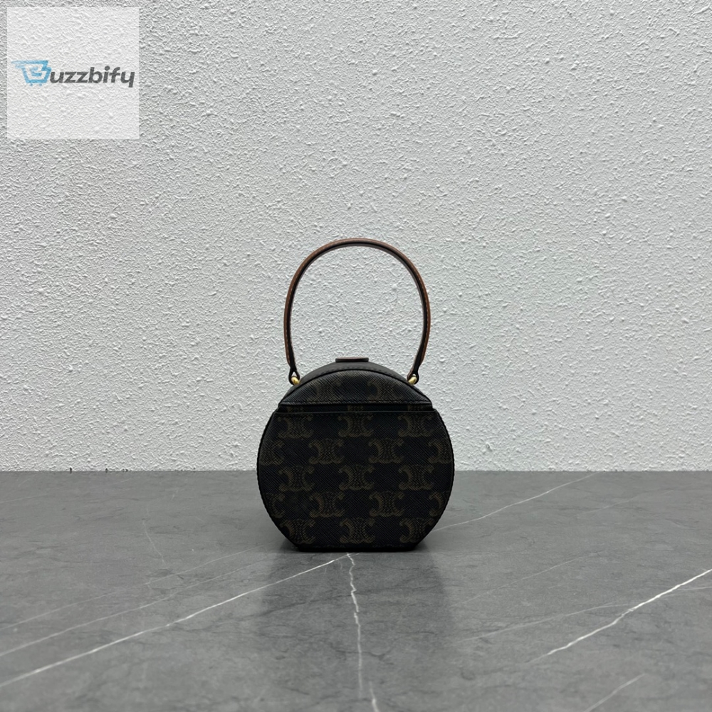 Invest in this timeless piece and elevate your style game to new heights. With its impeccable design and attention to detail, the Celine Round Box Triomphe in Triomphe Canvas Tan is a statement accessory that exudes elegance and individuality. Discover the allure of Celine and make a lasting impression with this exquisite bag.