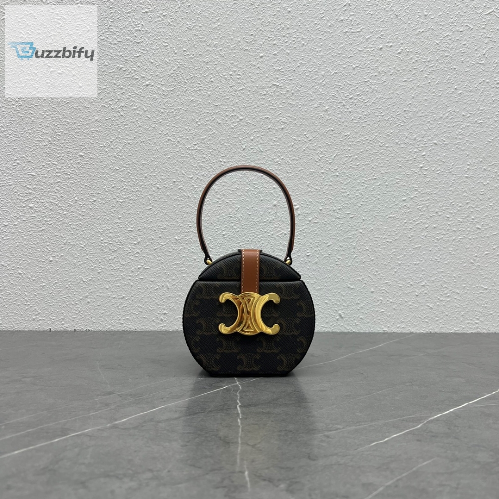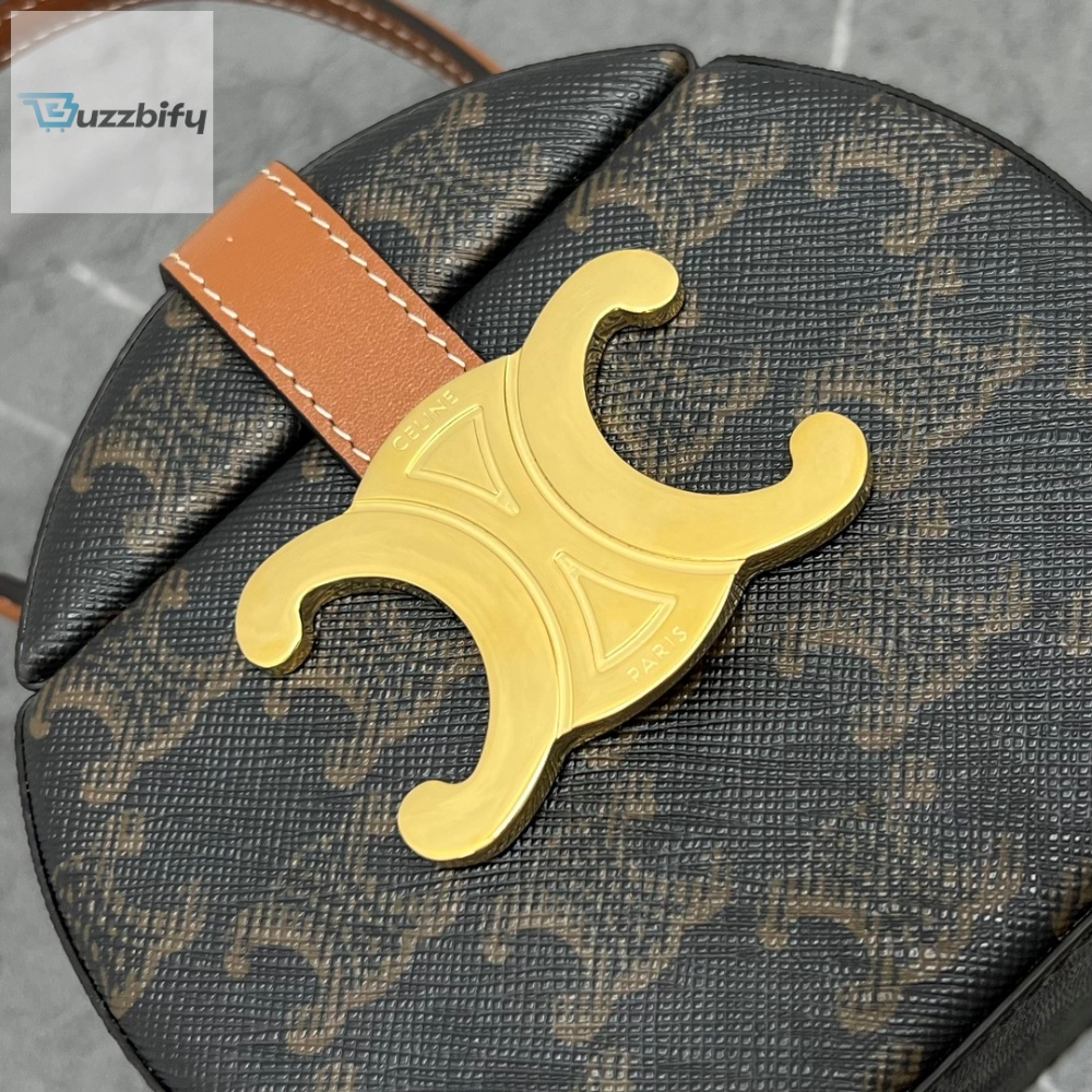 Link Ko-Fi: Celine Round Box Triomphe In Triomphe Canvas Tan For Women 5In12cm