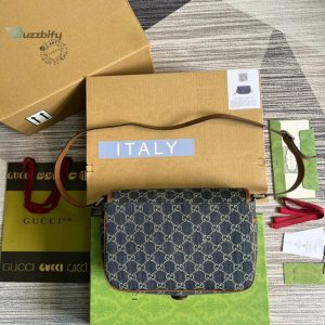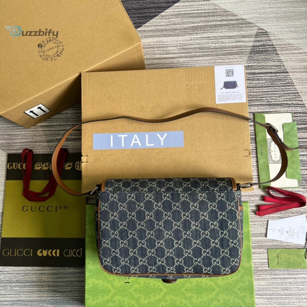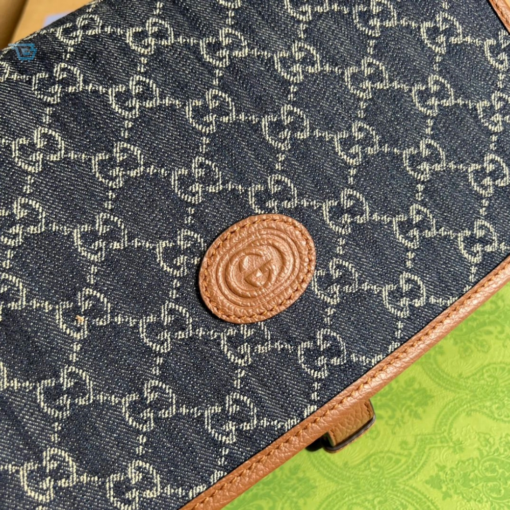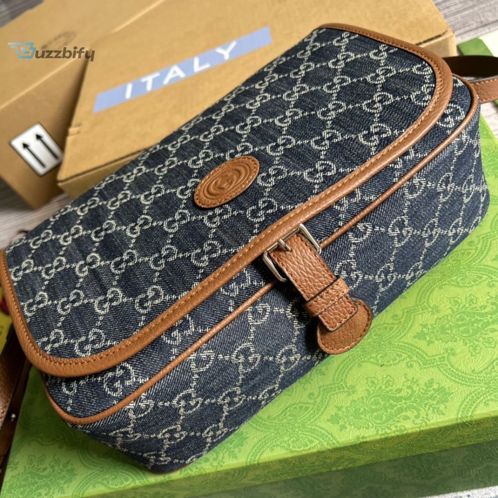 Gucci Childrens Gg Messenger Bag Dark Blue And Ivory Eco Washed Organic Gg Jacquard Denim For Women 11.4In29cm Gg