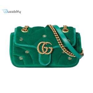 Gucci Gg Marmont Mini Green Shoulder Bag 446744 Fack2 2545 8.5 Inches 21.5 Cm