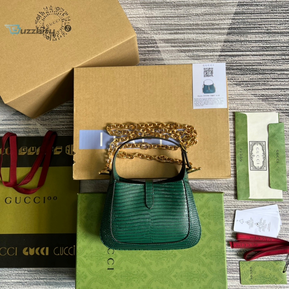 Gucci Jackie 1961 Lizard Mini Bag Green For Women Womens Bags 7.5In19cm Gg
