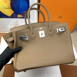 Hermes Birkin 30 Togo Etoupe Bag Silver Hardware For Women Womens Handbags 11.8In30cm
