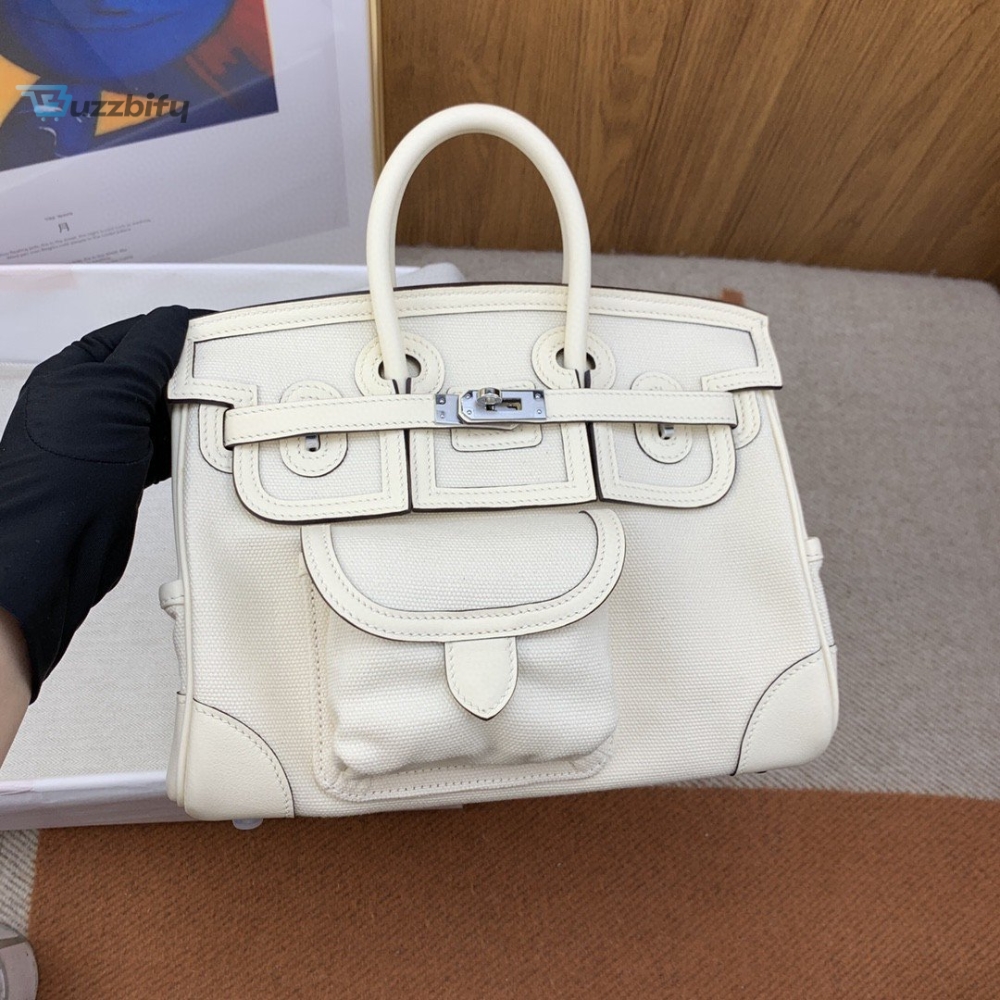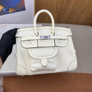 Hermes Birkin Cargo 25 White Silver Toned Hardware Bag For Women Womens Handbags Shoulder Bags 9.8In25cm