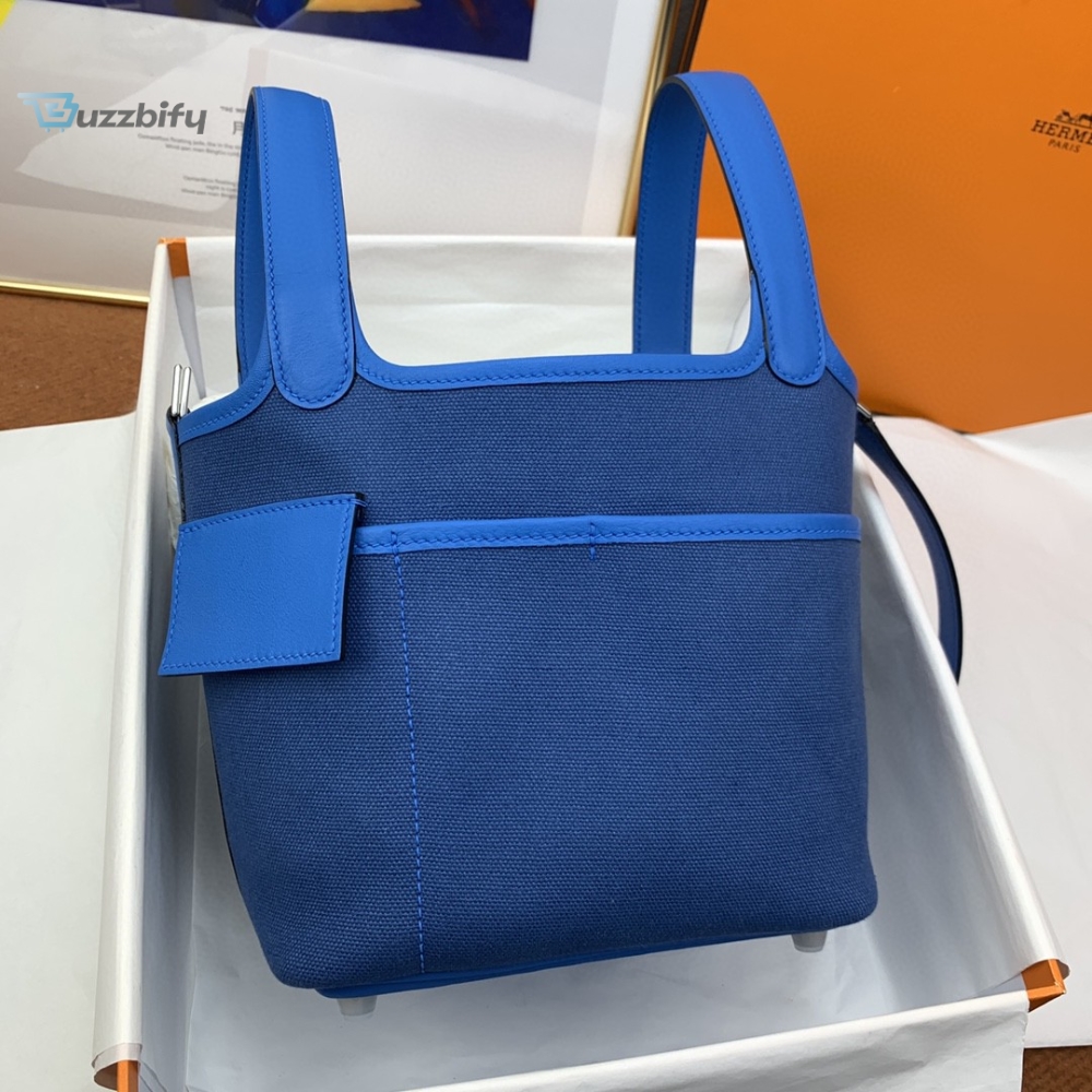 Hermes Cargo Picotin Lock 18 Blue Silver Toned Hardware Bag For Women Womens Handbags Shoulder Bags 7.1In18cm