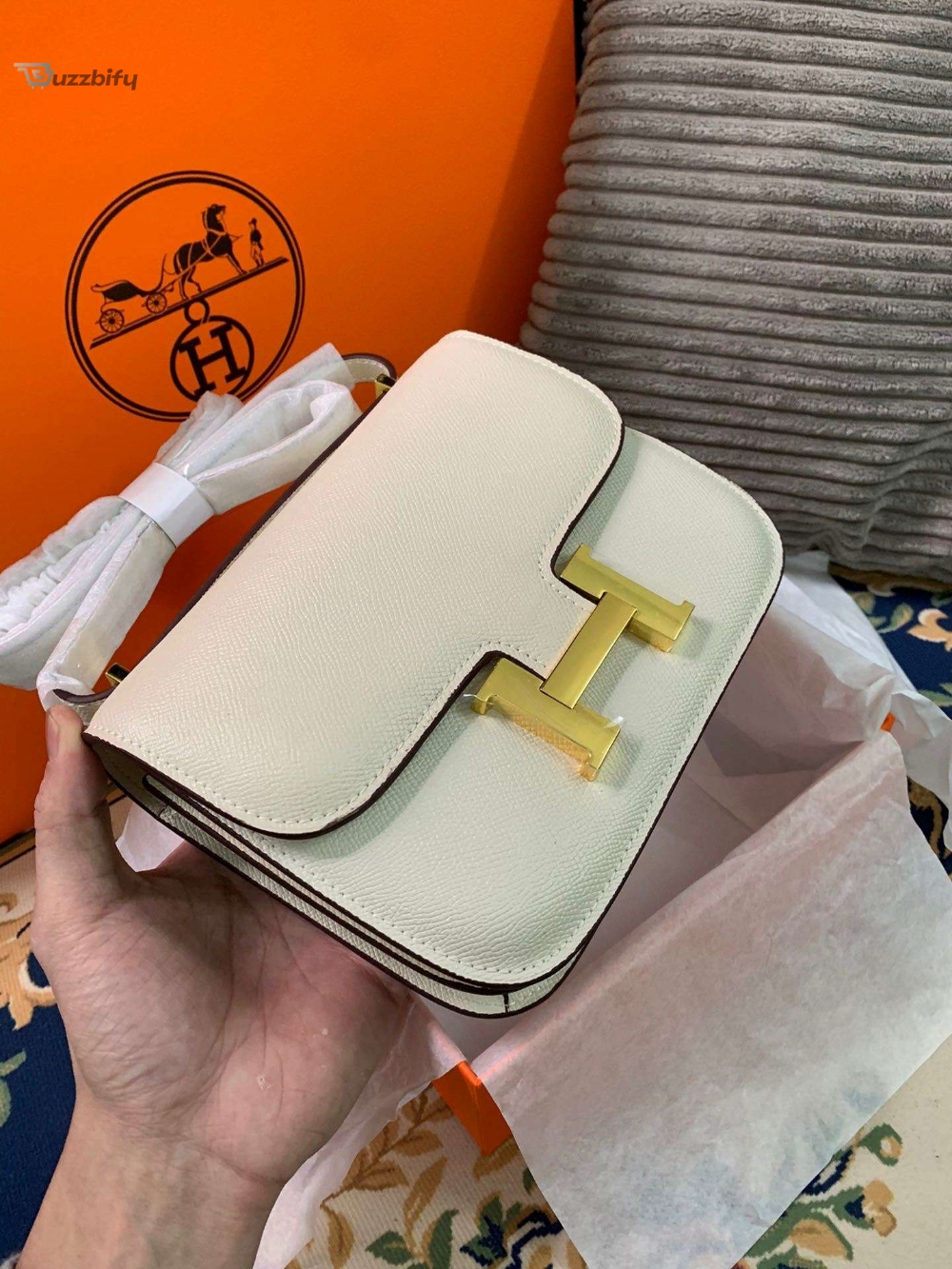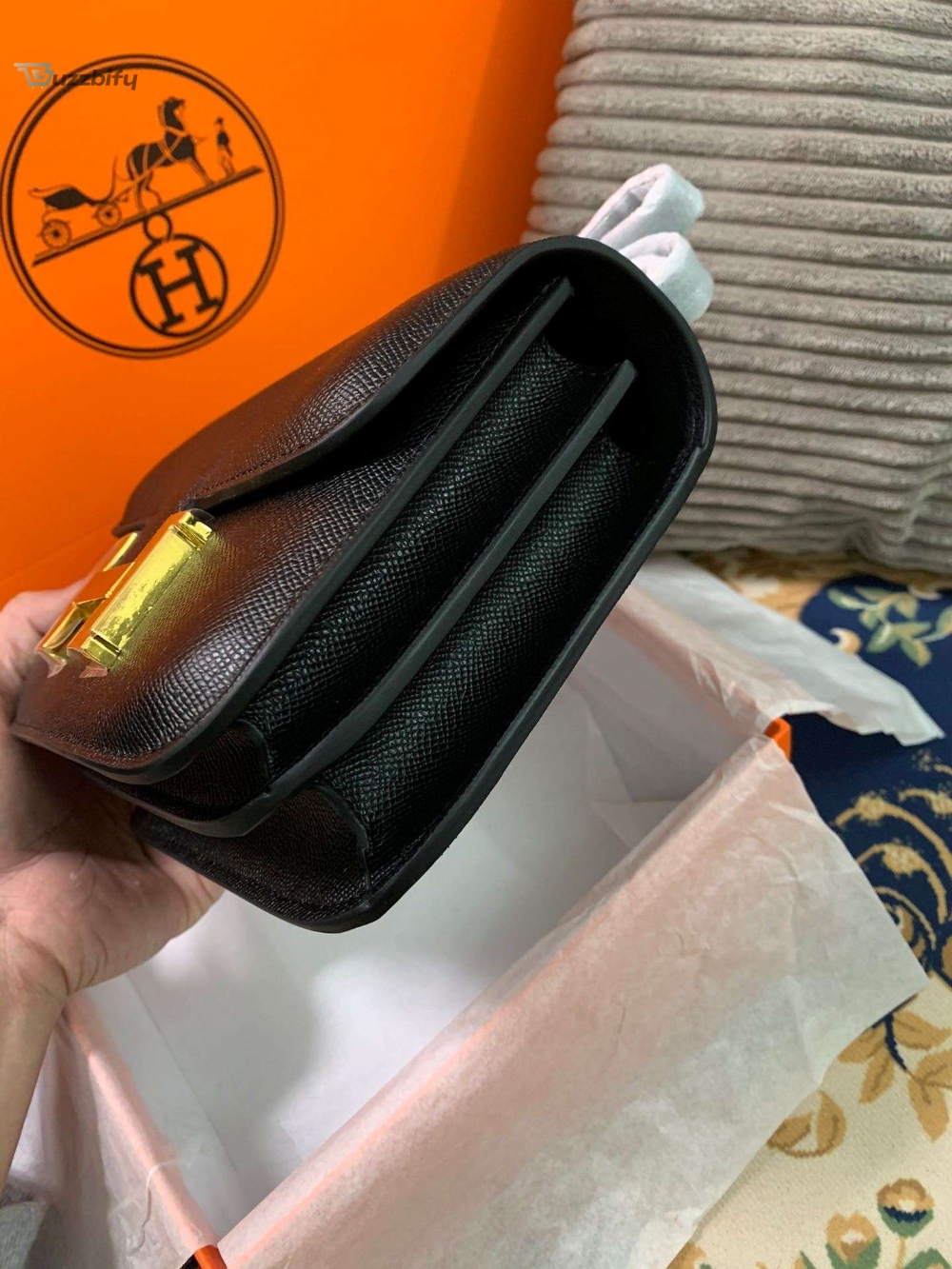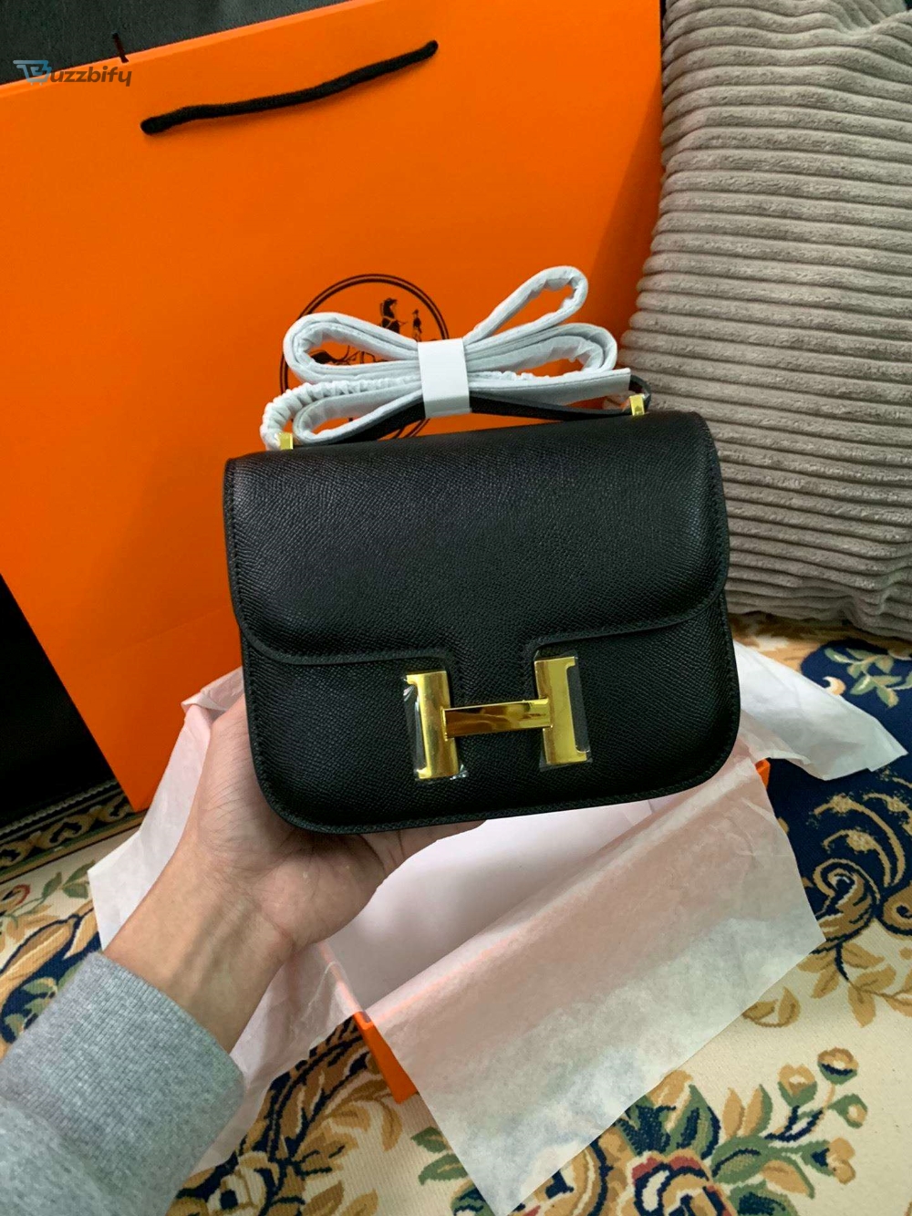 The sleek design of the Constance bag is meticulously handcrafted from high-quality materials, ensuring longevity and enduring beauty. The smooth, supple leather exudes sophistication, while the signature “H” clasp adds a touch of exclusivity. This versatile bag can effortlessly transition from day to night, complementing any ensemble with its understated elegance.