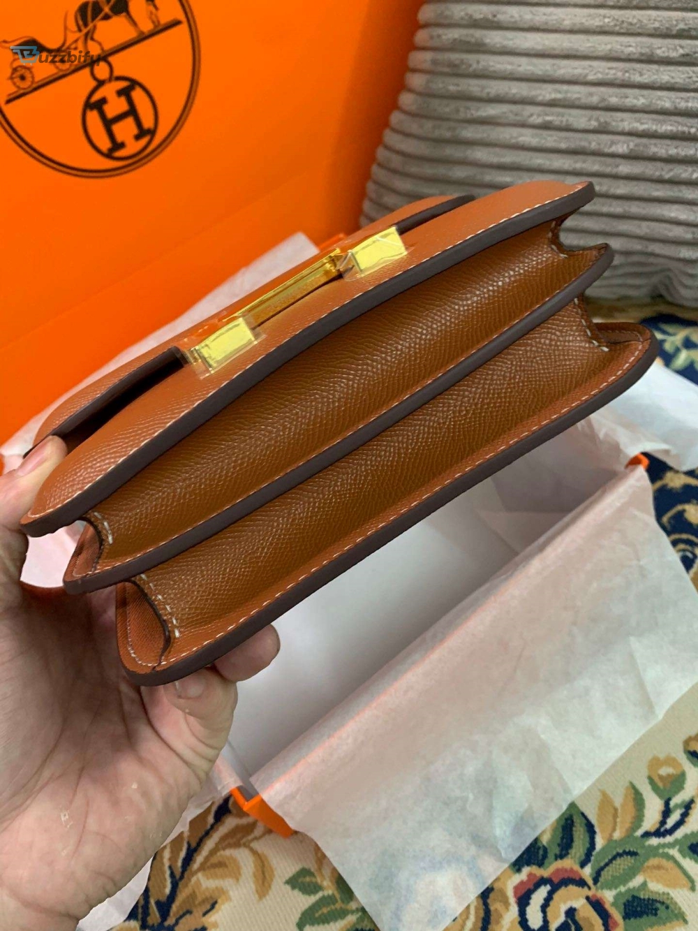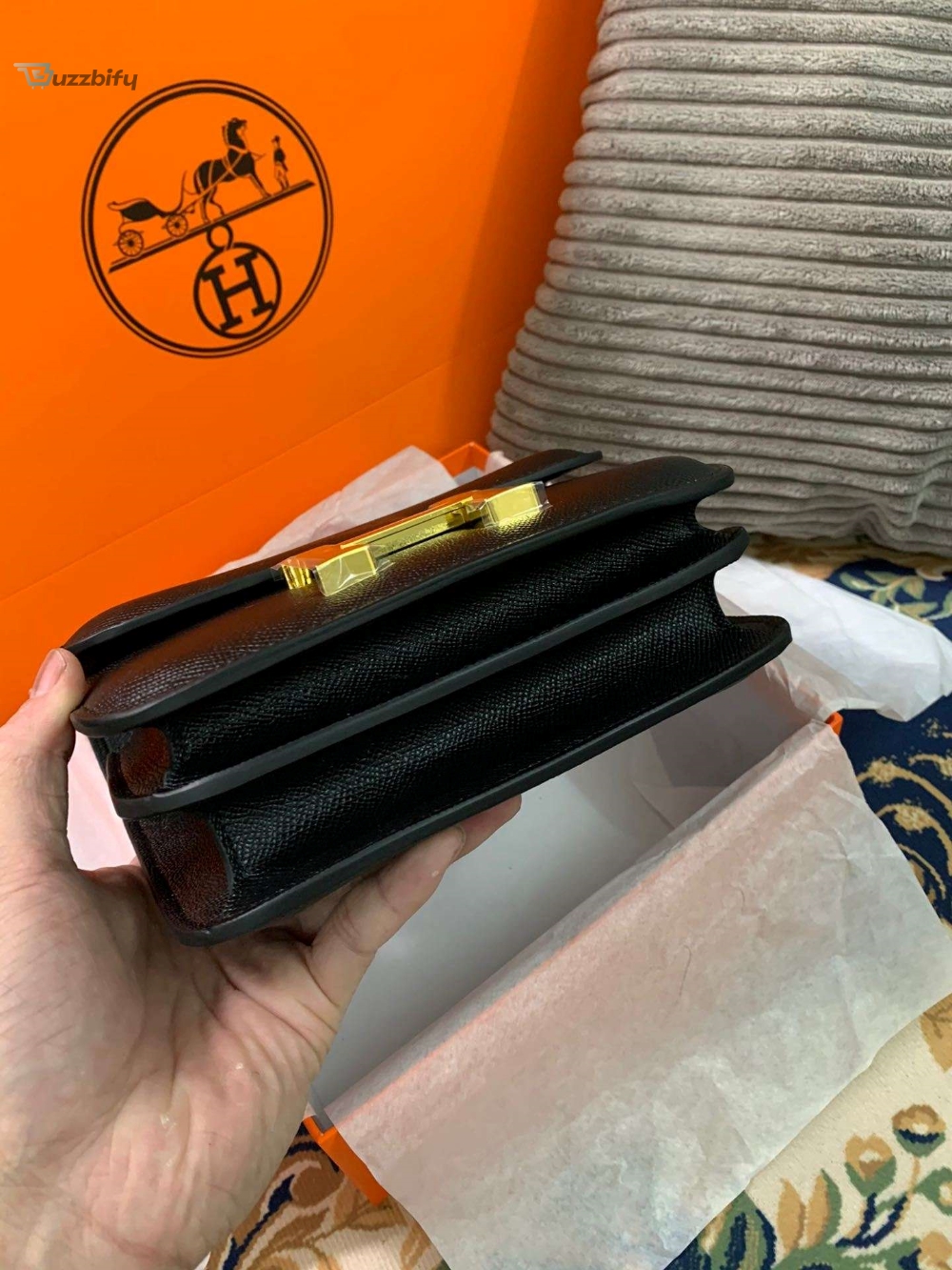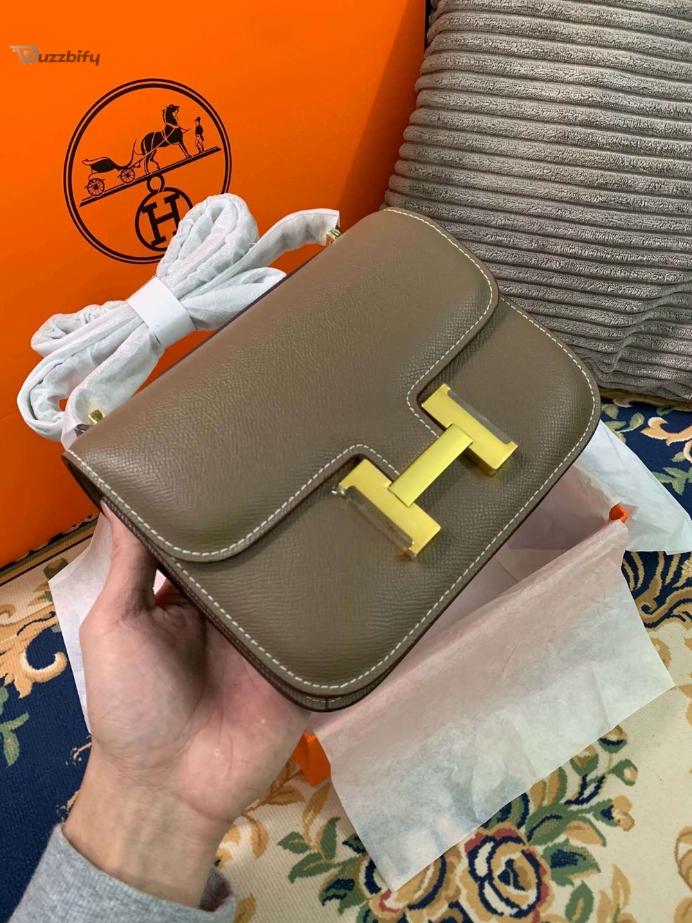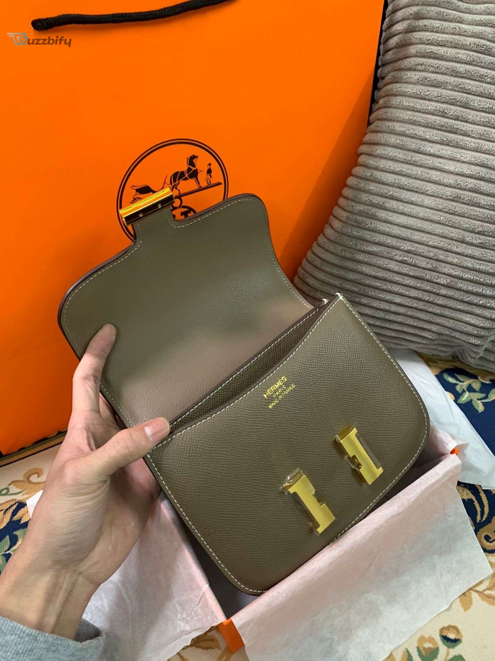 The sleek design of the Constance bag is meticulously handcrafted from high-quality materials, ensuring longevity and enduring beauty. The smooth, supple leather exudes sophistication, while the signature “H” clasp adds a touch of exclusivity. This versatile bag can effortlessly transition from day to night, complementing any ensemble with its understated elegance.