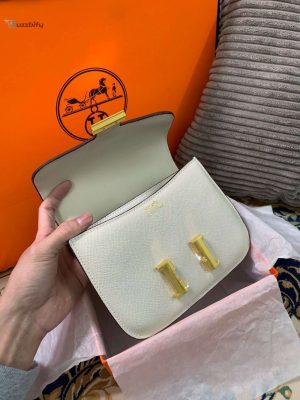 In conclusion, the Hermes Constance bag in black, brown, khaki green, or white is an epitome of elegance and luxury. With its impeccable craftsmanship, versatile design, and timeless appeal, this 19cm/7.4in masterpiece is a must-have for every fashion-forward woman. Elevate your style and make a lasting impression with the exquisite Hermes Constance bag.