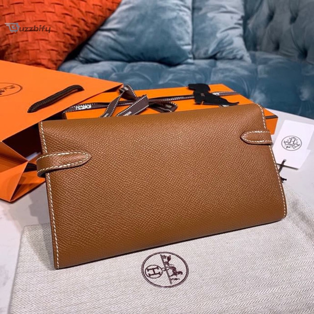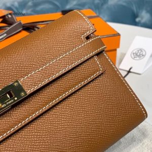 Hermes Kelly Wallet To Go Woc Brown With Gold Toned Hardware Bag For Women 8.2In21cm